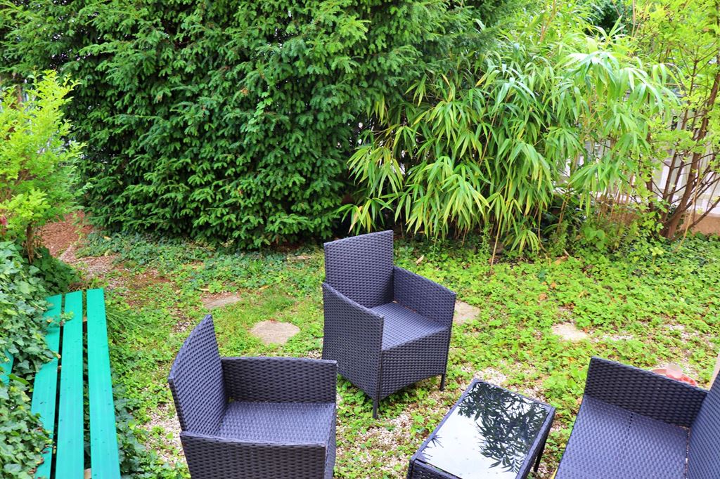 Au rez-de-chaussée : cuisine entièrement équipée avec accès direct au balcon et au jardin, vaste hall d’entrée desservant salon, salle à manger, bureau, bibliothèque (ou chambre de plain-pied), salle d’eau et WC séparés.